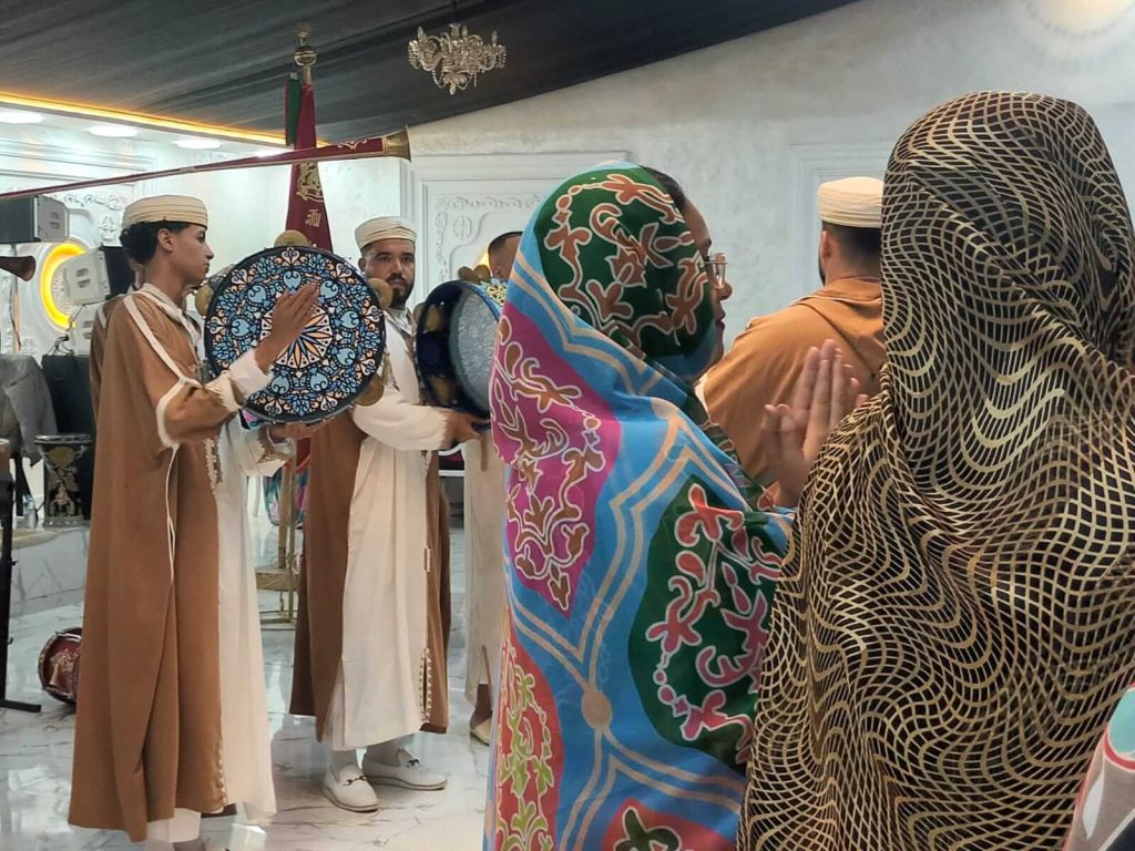 La comunidad entera participa: los vecinos ayudan con la comida, los hombres levantan las jaimas, las mujeres decoran el entorno y los músicos afinan sus bendir y ghaitas.